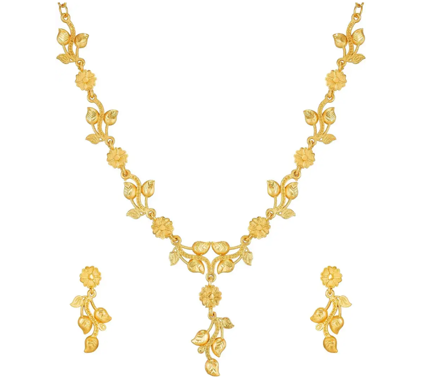 Add elegance and charm to your look with this beautiful gold-plated necklace and earrings set, specially designed for women and girls. Perfect for weddings, engagements, and special occasions, this set enhances your traditional and modern outfits effortlessly.